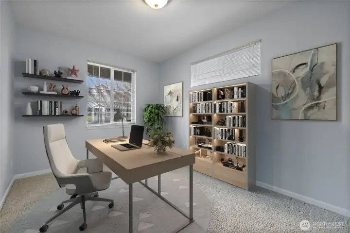 Welcome Home! This stunning residence with A/C, located in the highly sought-after Edgewater community, offers 2,078 sq ft of beautifully designed living space, including 3BR/2.5BA, & a versatile main floor office.Step inside to find gleaming hardwood floors and a bright, open-concept LR and kitchen area—perfect for entertaining or relaxing.The spacious kitchen boasts SS appliances, gas range & ample counter space.The main floor office/den is ideal for remote work or a quiet retreat. Upstairs, you'll find a private primary suite complete with a luxurious 5-piece bath and a generous walk-in closet.Two additional bedrooms, a full bath & a convenient upstairs laundry room.Fully fenced backyard & a 2-car garage.Seller will pay 2K closing costs!