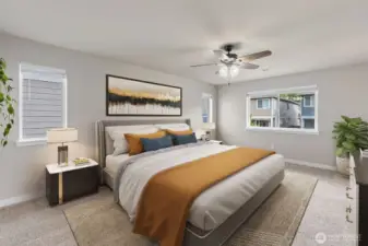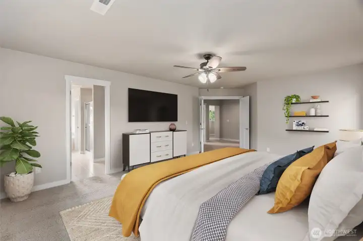 The rare main-floor junior suite makes this Bradbury home stand out, creating space for multigenerational living, long-term guests, or a private retreat. Built in 2021 by Rob Rice, the 2,611 sq ft layout balances openness with comfort, offering 5 bd and 3.5 bath across two levels. The main floor centers on a bright great room with a gas fireplace, engineered wood floors, and a kitchen designed for connection with quartz counters, oversized island, walk-in pantry, and open dining. Upstairs, the expansive primary suite joins three additional bedrooms, a full bath, and large laundry. A fully fenced yard, A/C, and access to schools, parks, and amenities make this home both practical and inviting.