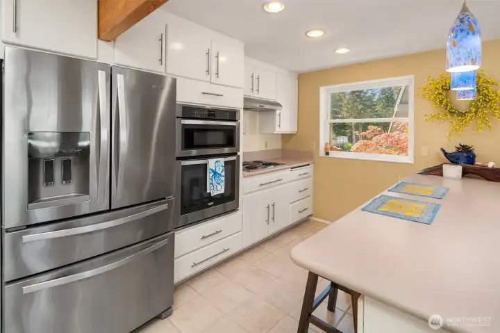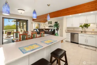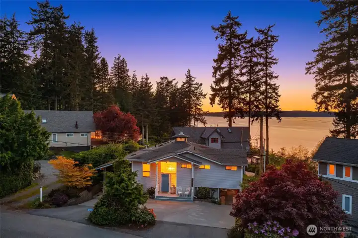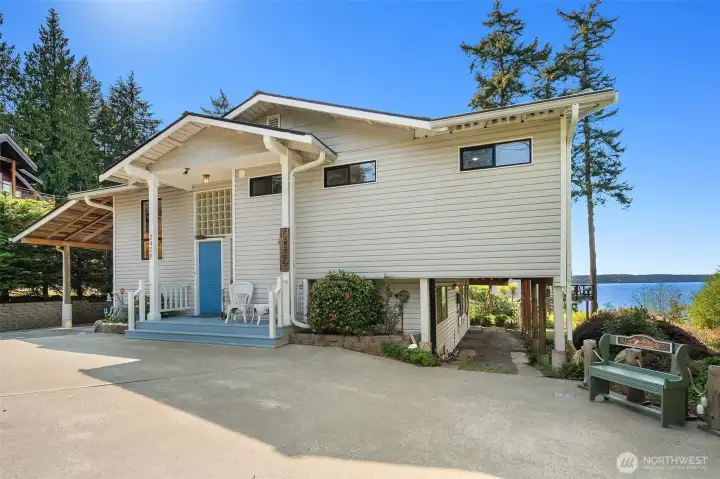 Turn key home with private community beach & boat ramp. See whales & eagles all year without high taxes, high banks or king tides. Water & garden views from almost every room. Main floor offers open concept kitchen, dining & family room allowing entertaining with ease inside or out. Oversized primary bedroom with walk-in closet, ensuite bath & access to deck. Second room can be an office/bedroom. Lower level with complete kitchen, family room & two more large bedrooms. Private entrance with a covered patio with garden & water views. Bonus tool/workshop room, 2 large storage rooms & mud room. Investment property with 2 potential rentals. Interior renovation in 2015 to kitchen & baths. New carpet, tankless water heater, wired for generator.