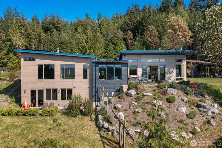 Experience island living at its finest in this 3,200 SF architect-designed Lopez retreat. Enjoy sweeping sunsets and front-row fireworks from a home that blends luxury and sustainability. Features include 3 ensuite bedrooms, a spa-like primary with heated Kohler tub and fireplace, a chef’s kitchen with Wolf, Miele & Café appliances, and radiant floor heating. Entertain year-round with a wood-fired oven, heated pavilion, and lush gardens. Solar panels, EV-ready garage, and fiber internet make everyday living effortless in this stunning setting.