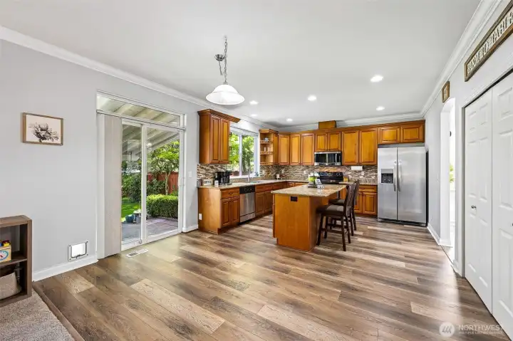 Wonderful updated home in desirable Sunrise area. The 2229 Sq. Ft. home offers 3 bedrooms and 2.5 baths. Vaulted entry with formal living and dining. The granite island kitchen with SS appliances opens up to the large family room with gas fireplace. Downstairs Den/Office (possible 4th Bedroom). The Primary bedroom features a 5 piece updated bath and walk in closet. Updated main bath & utility room upstairs. Enjoy the comfort & peace of mind in having a New Roof , Hot water tank, LVP Floors & sprinkler system. A/C for the summer months. Enjoy the enormous Covered Patio & fully fenced 8322 sq. ft. back yard for year round entertainment. 3 car garage with 240 outlet for possible EV charger. Very close to all amenities. Welcome home!