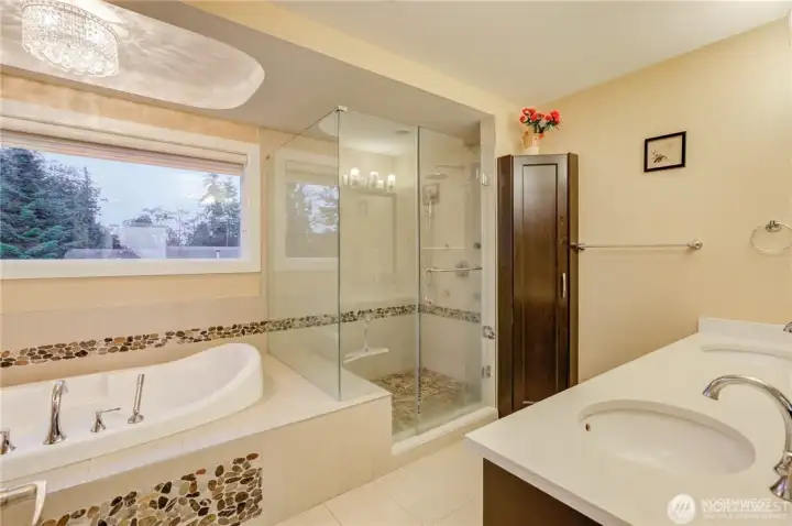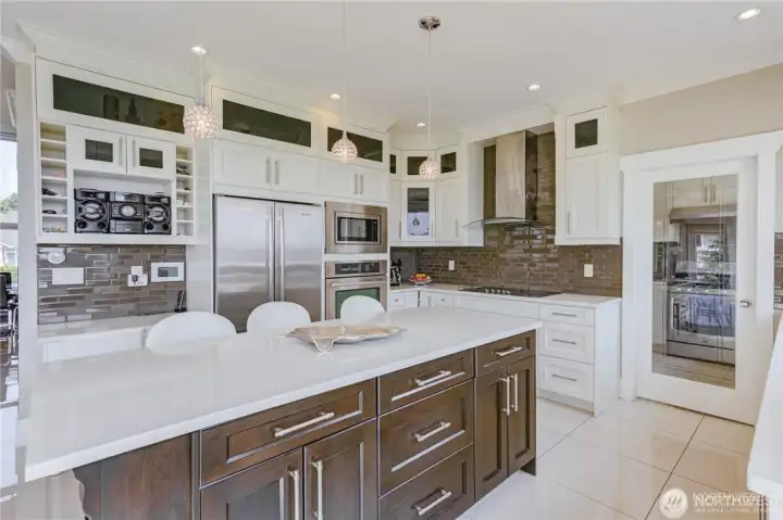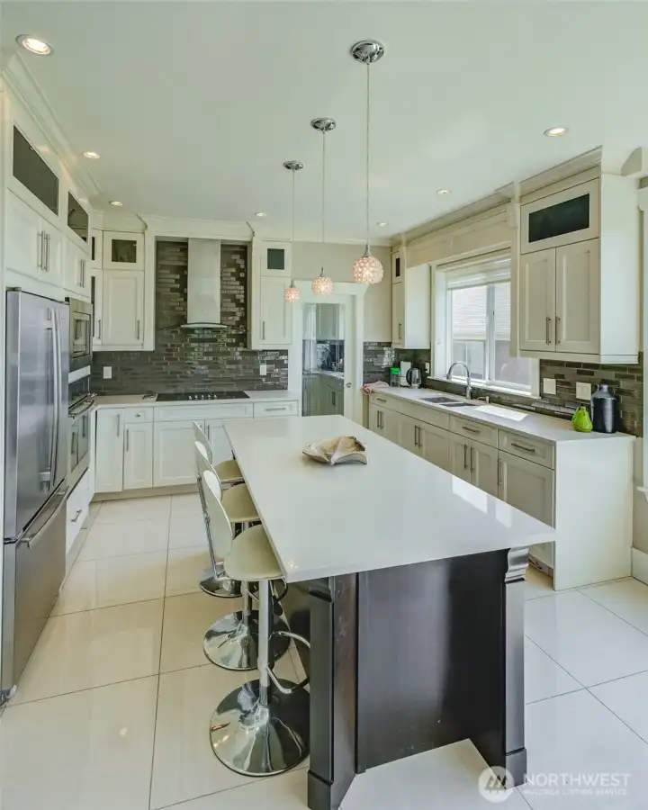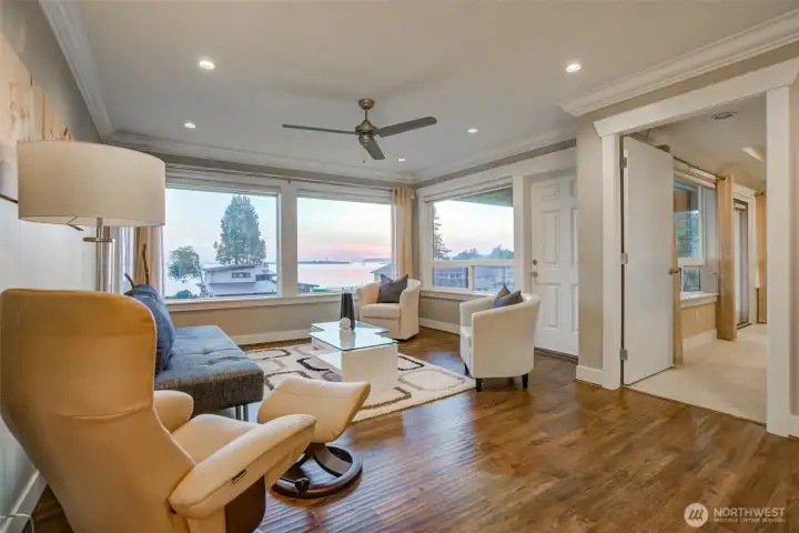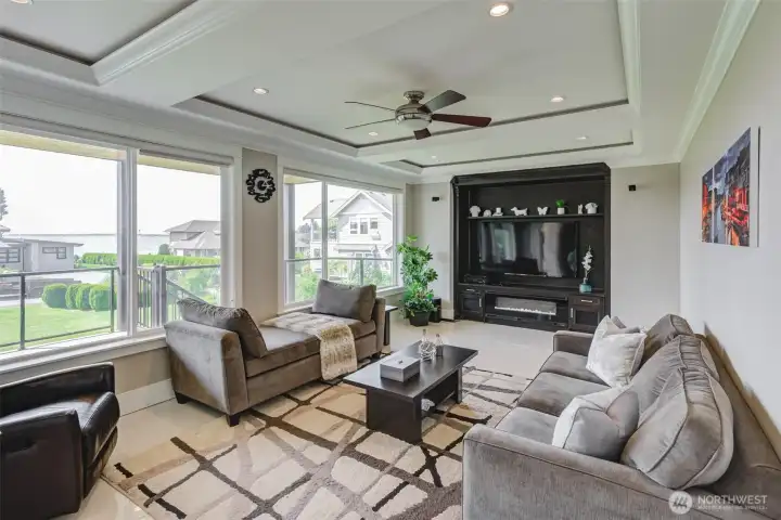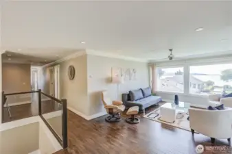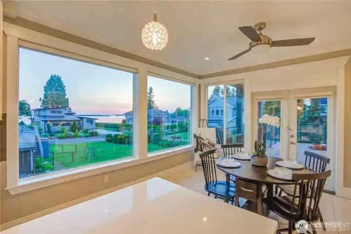 Experience breathtaking views from every room in this custom-designed 4-bedroom home, perfectly tailored for entertaining. Enjoy a bright, open layout featuring a main kitchen plus an adjacent spice kitchen, two dining areas, and three inviting living spaces. The home includes a luxurious primary suite and an additional guest suite for extended stays or multi-generational living. The spacious (1800 sq. ft) unfinished basement is already plumbed and ready to finish as an ADU. Ideally located in a sought-after neighborhood just steps from Hughes Bayview Park and minutes from I-5 and the Canadian border.
