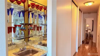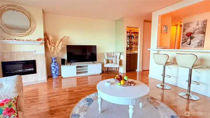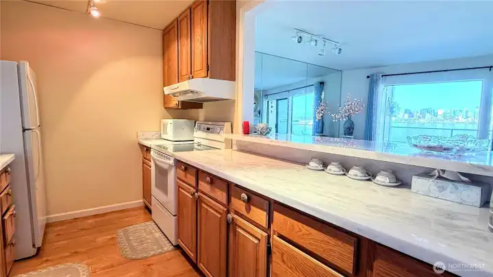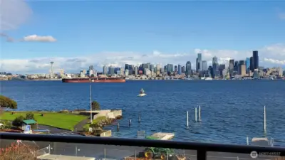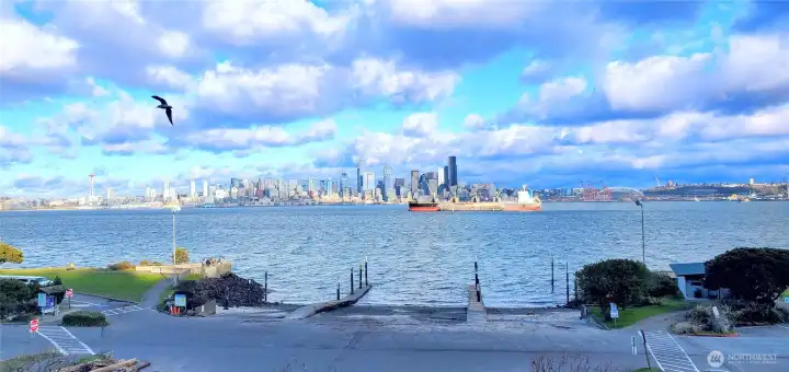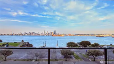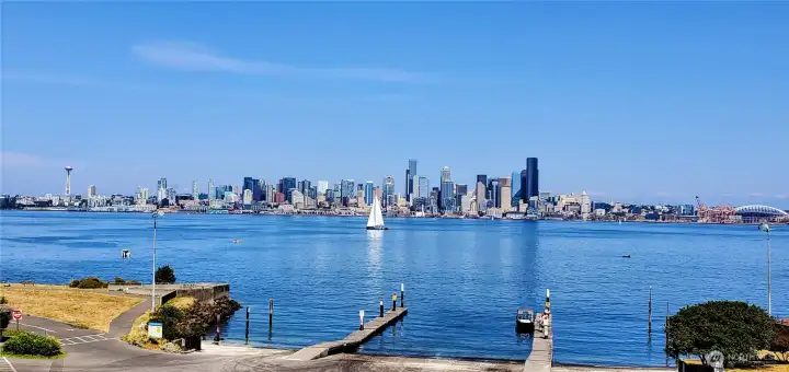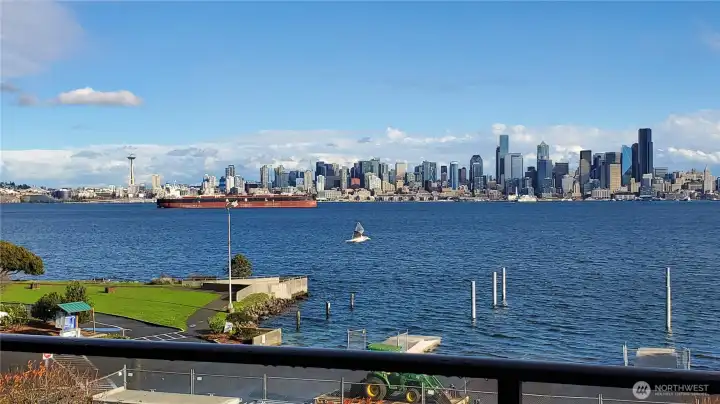 Enjoy breathtaking, unobstructed views of Seattle skyline, Elliott Bay, and the sparkling waterfront from this beautifully updated 3rd floor condo. It offers 776 sq ft of stylish, functional living space and a front-row seat to the best of Seattle's coastal charm. Step into the remodeled kitchen, featuring sleek quartz countertops and a convenient pass-through high bar-perfect for entertaining or enjoying the views while you cook. The open-concept living space is enhanced by new wood floor, a cozy wet bar, and a rare glass-enclosed office space ideal for working from home. Unwind on your private balcony as you watch ferries glide by. With vibrant dining nearby and easy commutes via Water Taxi or driving to Seattle. The Alki Dream awaits!