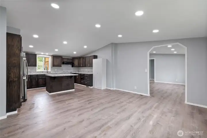 Stylishly Remodeled & Move-In Ready! This spacious 3-bedroom, 2-bathroom home is a stunning alternative to new construction or an ADU. Currently located in a well-maintained park with space rent, this home can also be purchased and moved to land you own, offering affordability for any lifestyle. Enjoy vaulted ceilings throughout for a light and airy feel. The updated kitchen features a large island, ample storage, and newer appliances—ideal for gatherings. One bathroom includes a walk-in tub for added comfort. Freshly painted inside and out, the home also includes a bonus room perfect for an office, den, or playroom. Sitting on a fully fenced lot with two storage sheds (if you prefer to stay in the community), this home is a must-see!