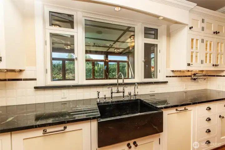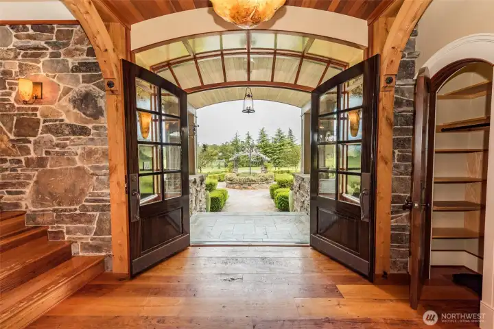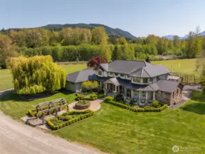 This empire era manor house on an 18.75 acre organic farm with over a quarter mile of Dungeness River frontage combines the solid materials and fine craftsmanship of the old world w/the amenities and conveniences demanded of today’s lifestyle. The property includes a fully equipped guest apartment, and separate commercial kitchen building. The interiors of the main house are remarkable at every level: from blown glass light fixtures to thousands of board feet of custom Honduran mahogany paneling & trim, to the antique chestnut flooring, to the custom steel work & timber crafted antique oak frames this marvelous home shows both elegant grandeur and a comfortable coziness rare in any era. An unprecedented home on an unrivaled piece of land.