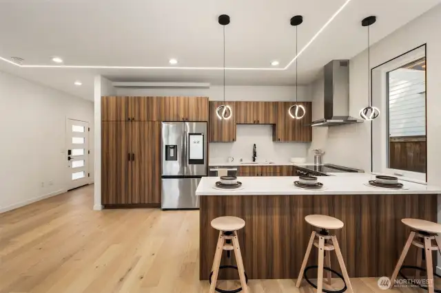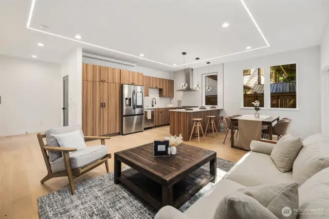 Beautifully crafted new construction home by local homebuilder Rockhouse Builders, in one of Seattle’s best neighborhoods. Main floor includes open concept kitchen & living room, complemented by expansive windows for an abundance of natural light. Spacious living area seamlessly flows to large backyard and inviting back patio—perfect for entertaining. Upstairs are two large bedrooms and a luxurious primary bedroom which is a true retreat, featuring den, a built-in closet and a spa-like bath with designer lighting and premium finishes. Year-round comfort w/ Mini splits offering A/C to beat the summer heat! Conveniently located just blocks to Wedgwood shops & restaurants, and minutes to U Village, UW, Children's Hospital & Burke-Gilman Trail.