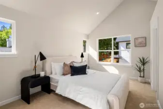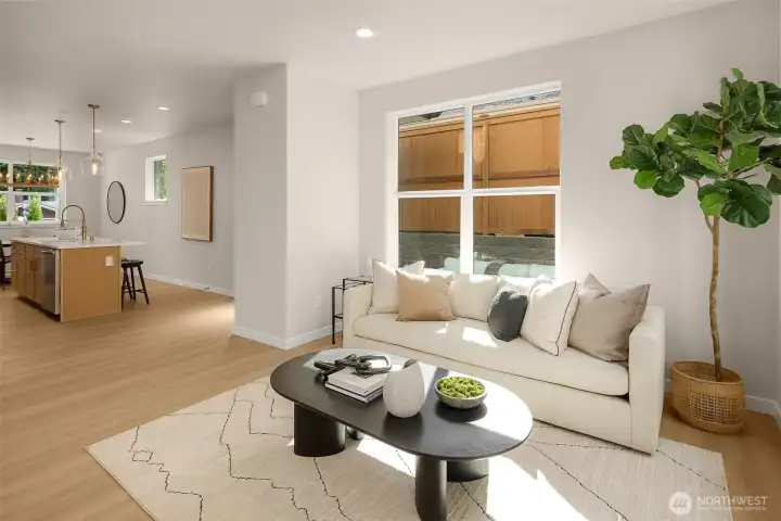 Exceptional new construction by Blue Ridge Homes, blending modern elegance with thoughtful design in a prime Kirkland location. This beautifully crafted 2-bedroom, 2.5-bath residence offers a spacious open-concept layout designed for both refined entertaining and comfortable everyday living. The main level features a gourmet kitchen with quartz countertops, sleek cabinetry, and designer finishes, seamlessly connecting to the inviting great room. Expansive windows fill the space with natural light, while direct access to a private patio creates effortless indoor-outdoor flow. Upstairs, the luxe primary suite provides a serene retreat with a spa-inspired bath and generous walk-in closet. A well-appointed second bedroom, additional bath, and conveniently located laundry complete the upper level. Energy-efficient systems and an attached garage enhance comfort and convenience, plus one designated EV ready parking space. Ideally situated near Downtown Kirkland, waterfront parks along Lake Washington, premier dining, tech campuses, and award-winning Lake Washington schools, this home offers the perfect balance of style, location, and lifestyle.