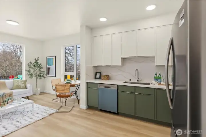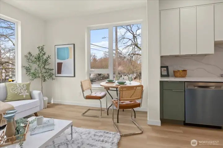 Visit our staged Model at 2378 Franklin Ave E. This thoughtfully designed multi-level home offers a modern, functional layout featuring two primary suites, an expanded great room, and a contemporary open kitchen with stainless steel appliances. The versatile loft/office area adds flexible living space. Included is a street-access 1-bedroom ADU with its own entrance, utility meter, full kitchen, ¾ bath, and a W/D closet—perfect for rental income, a home office, or guest suite. The rooftop deck provides sweeping city views, and a dedicated parking spot is available for purchase (first-come, first-served). Enjoy easy freeway access and close proximity to the Downtown Tech Hub and UW. Endless potential in a prime location!