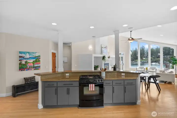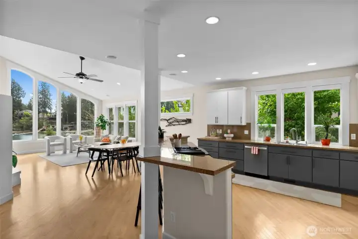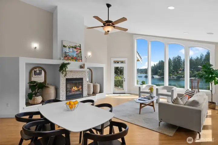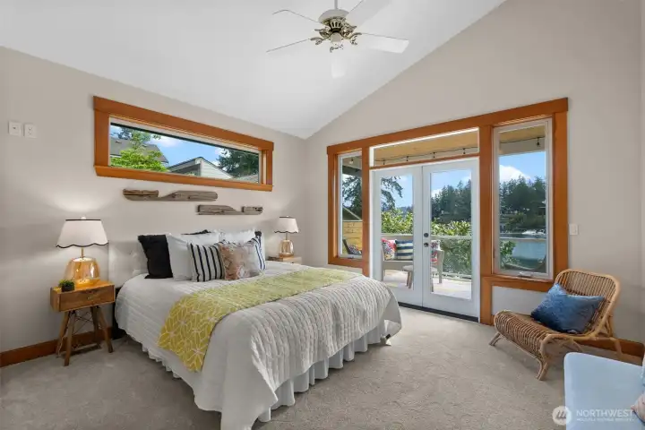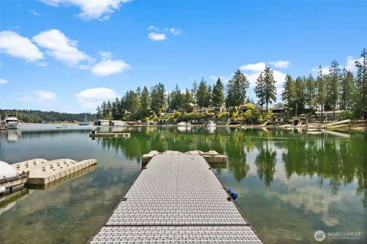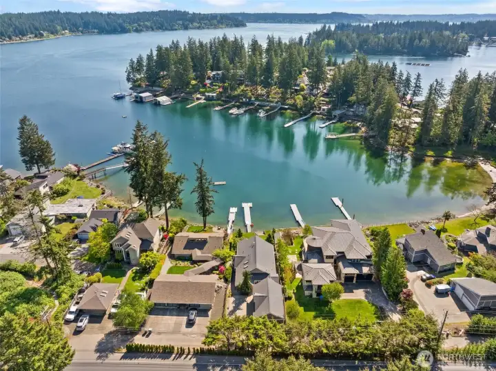 Bring your boat & your favorite people! This beautifully executed low-bank waterfront rambler in Honeymoon Bay offers year-round moorage. Enjoy sunrises from the balcony off the luxurious primary suite. Indoor-outdoor living. The main level features dramatic windows that frame stunning views, a central kitchen that anchors the flowing floor plan, and a private study with an adjacent ¾ bath. Downstairs, a fully contained walk-out daylight level includes kitchenette, fireplace, & ensuite bedroom—perfect for guests or multi-generational living. Electric invisible fence, new dock 2014 w/ 3 jet ski floats, new water heater 2024. 4-car garage, spacious mechanical room doubles as gym, & covered storage for kayaks and all the water toys!