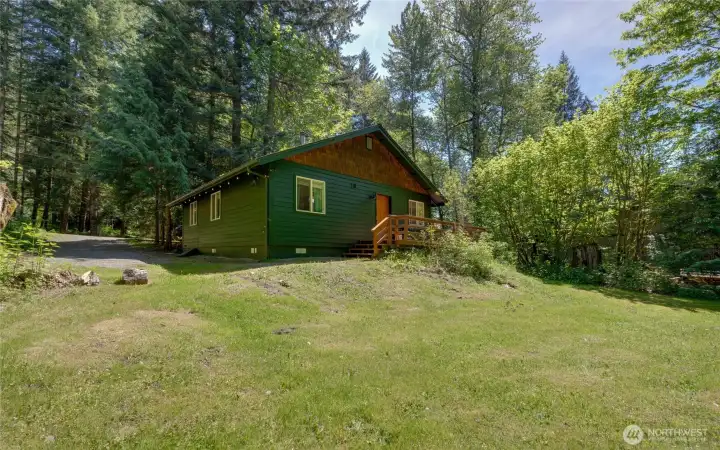 Enjoy your very own mountain retreat in the desirable Glacier Springs community. This well maintained VERY hard to find single level full 3 bd 2 bath cabin on a private lot will go fast! The fully furnished cabin features open kitchen, living room and dining area, breakfast bar, wood burning stove, larger yard and wrap around deck. The cabin was recently updated with fresh interior and exterior paint, new wood flooring, cabinets, countertops, sink, dishwasher and beverage fridge. This home is move in ready perfect for your vacation home or a short term rental. Only 30 minutes to the world famous Mt Baker Ski Area and not far from hiking and biking trails!