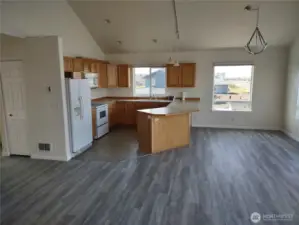 Views! Ships in the Pacific, Westport, windmills by Tokeland, Olympic Mtns & Mt Rainier from this house by the North Jetty. This 1456 sqft open floor plan features expansive great room w/ large windows, vaulted ceilings, vinyl plank flooring, propane stove for heating or ambience. Living room, kitchen, 2 BR & bath upstairs. One BR, bath & ldry rm downstairs. BRs carpeted, rest of house has vinyl & plank flooring. 2nd story deck full width of house. Xtra Lg 2-car garage w deep sink & under stair storage. Newer, quiet dishwasher. Newer washer/dryer, extra fridge in garage stay. Utility shed, "retreat shed" w concrete tile floor in fenced back yard. Walkable neighborhood, close access to the beach & jetty. RV parking with sewer hook-up.