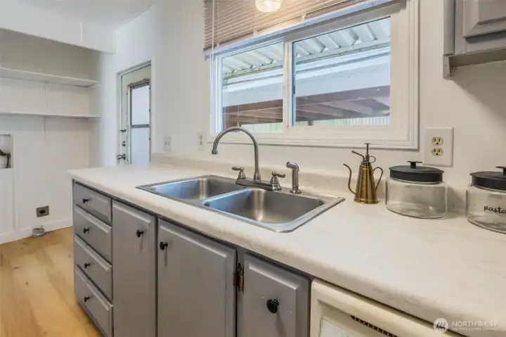 Beautifully remodeled home in 55+ Community, Cherrywood Manor. Located near a peaceful creek, in a sweet spot of Edgewood, close to major freeways. Newly resurfaced roof, new paint & new luxury vinyl plank flooring throughout. Refinished cabinets and upgraded hardware in kitchen, along w/ custom built in hutch to match. Large vinyl windows to bring in natural light. Bedrooms are a great size, and the primary has a walk-in closet with plenty of storage! Remodeled bathroom w/ New Fixtures. Covered patio area perfect for sitting out & enjoying quiet summer evenings. The stairs from there lead to your landscaped back yard. Tons of storage with Free-Standing Shed, + additional refinished Workshop behind your Carport! Ask about Owner Financing!
