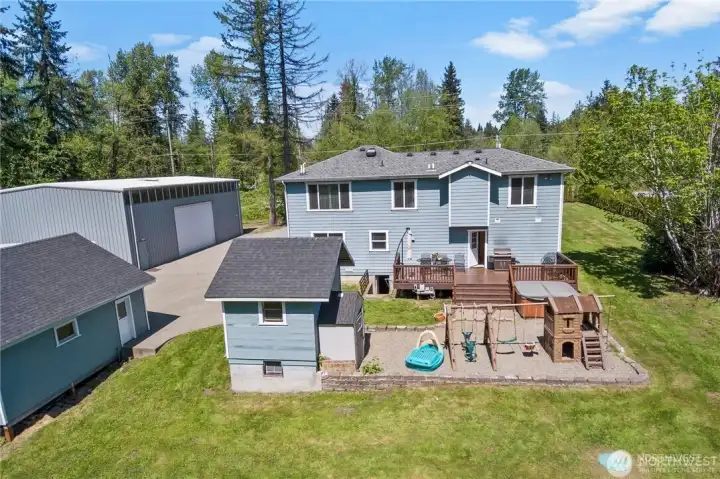Huge price adjustment! Discover this charming craftsman-style residence, perfect for housing your equipment and vehicles. Step onto the inviting front porch and into a spacious, open-plan main floor featuring soaring vaulted ceilings. The main level includes a cozy bedroom and a versatile bonus space. Upstairs, find a generous primary suite, additional bedrooms, and a adaptable loft area. Utilize the separate studio structure for creative or professional pursuits. The 806 sq ft unfinished basement brings the home’s total to 3,342 sq ft. Enjoy a chicken coop for fresh eggs. The property boasts a two-car detached garage, a colossal 2,400 sq ft workshop and ample RV parking.