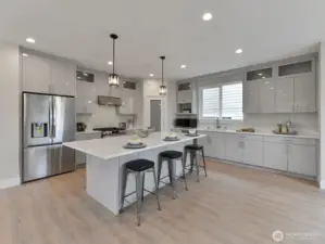 full basement apartment ,780 sq ft. in this 3050 sq ft 3 story new constuction home . 6 bedrooms, 4 bathrooms. Lower level has its own entry if needed . Great modern design and finishes built by small local builder. Hardwood LVP, white painted millwork, stainless steel appliances, modern lighting, quartz counters, grey cabinets, metal hand railings. Rear yard is fully fenced. Garage textured /painted. Four bedrooms upstairs, 1 bedroom/den on main floor with 3/4 bath. Full sized kitchen, bathroom, living room, eating area and bedroom. Gas stoves in 2 kitchens. Grand primary en-suite bathroom. This is a one only single lot build, no HOA, bring us your offer.