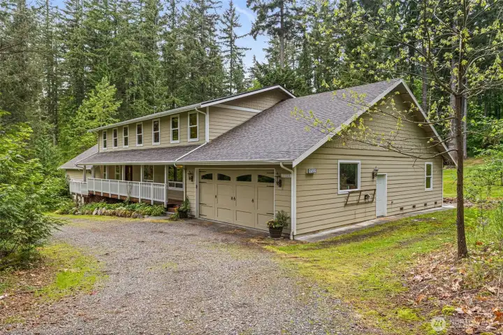 Multi-generational potential on nearly 5 acres in the secluded Lake Youngs area! Originally designed to house multiple families, this expansive home features a spacious primary bedroom on each floor, each with huge walk-in closets & attached bathrooms, two laundry rooms (one on each floor), two heat pumps, furnaces, and thermostats, so that each floor has its own climate control, an attached shop large enough for 4 vehicles, & another 2 car garage. The massive kitchen is highlighted by high-end appliances, a large island & plenty of storage & counter space. Other features include a pellet stove, central vac, upstairs living room, a hidden bonus room upstairs & groomed walking trails through the woods. Just steps from the Lake Youngs trail.