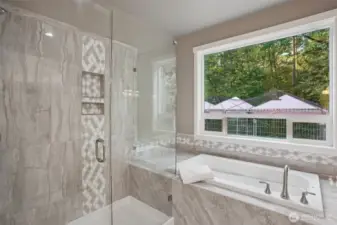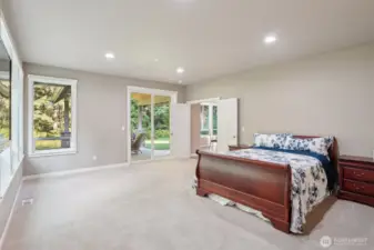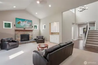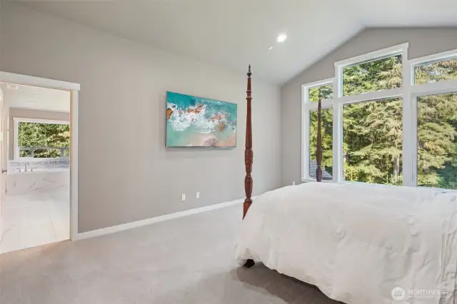 Seller is offering 10k towards buyer closing costs. Tucked away on a private, serene 1.5-acre lot surrounded by wooded open space, this extraordinary home offers the perfect blend of luxury, comfort, & flexibility. The spacious great room layout includes a gourmet kitchen w/ upgraded SS appliances, flowing seamlessly into a vaulted-ceiling family room w/ a cozy gas fireplace. Enjoy the rare convenience of dual primary suites — ideal for multi-generational living or hosting guests. Additional bedrooms located upstairs, offering space for everyone. Step outside to a covered patio w/ plumbed propane for grilling & take in the tranquil, tree-lined views — perfect for relaxing mornings or entertaining evenings! Oversized 3-car garage & Generator