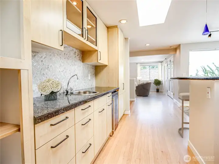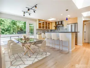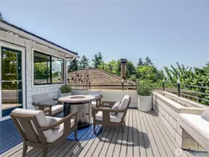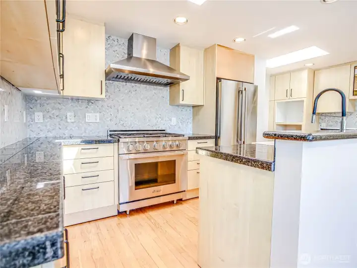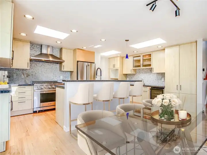 Great home in Genesse neighborhood. New hardwood floors upstairs and new engineered hardwoods in rec room. Come visit to experience the leveling out! Genesee view home. West Seattle lifestyle and a major $200K remodel of this delightful home. The chef's kitchen has a DSC range with commercial hood. Wine Fridge. Great room space is fully wrapped with windows and skylights w/accesses to deck. This main level is all hardwood floors with a half bath, nook and laundry room. Upper floor is the primary suite - Walk-in closet- Luxe bath has skylight - Double vanity - slab counter - Fully tiled walk-in shower Lower floor - 2 bedrooms, a full bath and a recreation room opens to patios, grassy lawn & tiered garden, 2 car garage.Shed in backyard.