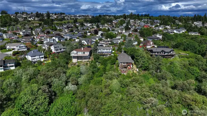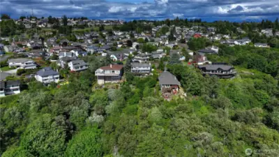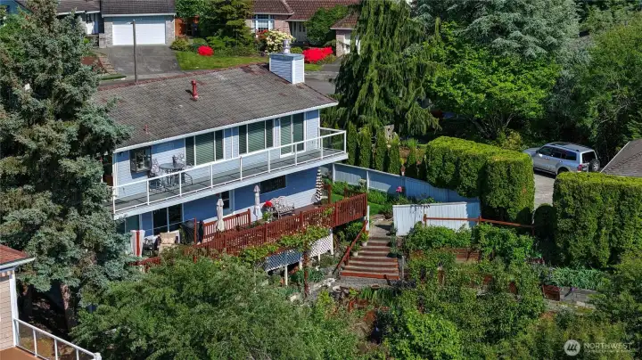 This house has the most specular view of Commencement Bay and is the best value on the market. Enjoy the unobstructed views from both expansive decks. This immaculately kept, move-in-ready home is perfect for relaxation or entertaining. Nestled in a quiet cul-de-sac and set on nearly half an acre, the property boasts a park-like setting with mature fruit trees and a charming greenhouse for year-round gardening. Inside, natural light floods the freshly painted house. Both eating tables overlooking the bay. Home features a durable tile roof, efficient heat pump and an oversized two-car garage. Possibility of making the 3rd level an ADU. This peaceful retreat combines privacy, charm, and stunning views, the perfect home