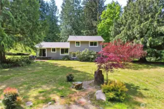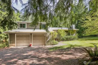 Nestled on a private 2.3-acre lot, this tri-level home offers peace, privacy, and space to live, work, and create. With BRAND NEW CARPET, this house features 3 bedrooms, 2 updated baths, vinyl plank flooring on the main level, and fiber internet. The bright living and dining areas open to a deck, and the kitchen is updated and functional. Downstairs includes a large bonus room and a finished space perfect for an office or hobby room. Upstairs are all 3 bedrooms, including a primary suite with ensuite bath. A spacious shop and ample parking complete the package. Ideally located between Poulsbo and Kingston with easy access to ferries, shopping, and more. Mortgage savings may be available for buyers of this listing.