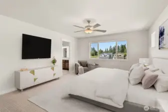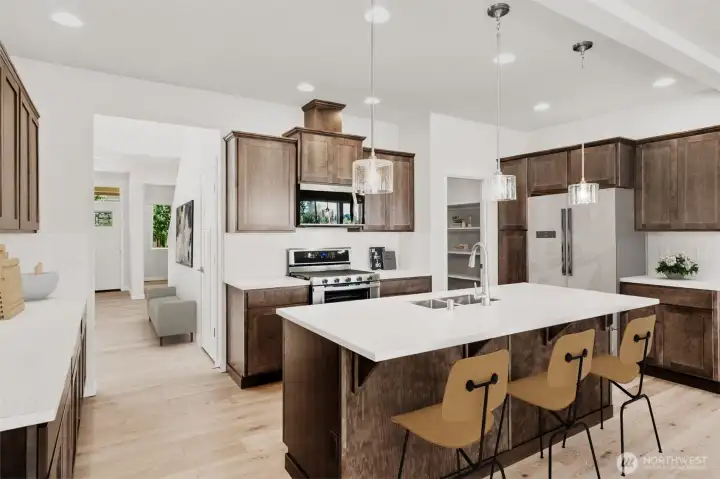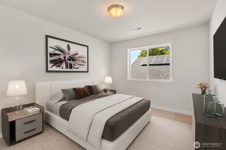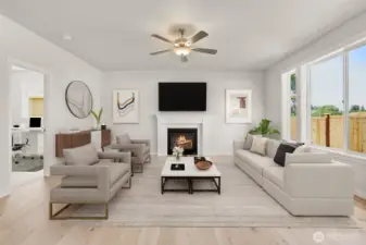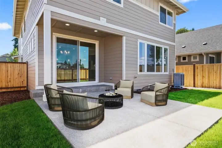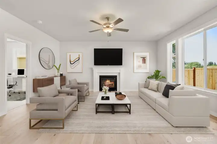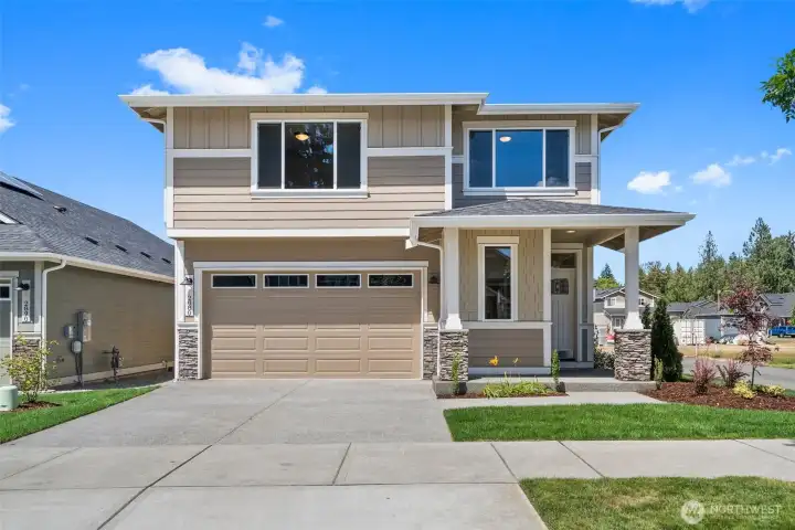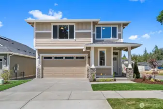Celebrate the Season with Move-In Ready Comfort! Washer, dryer, refrigerator & blinds now included on all completed homes! Step into the chef-inspired kitchen—featuring "Graphite" Maple cabinetry, quartz countertops, a full tile backsplash, and a gas stove with double oven. Expansive hardwood floors lead you through light-filled spaces, including a main floor den and an upstairs bonus room, designed for both work and play. Outside, relax on the covered patio overlooking a fully landscaped yard including privacy fencing. Energy-efficient features like solar panels, a heat pump, and a hybrid water heater ensure year-round comfort. All this in a Rob Rice Home, just moments from I-5, Costco, and Tumwater Schools.