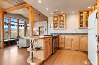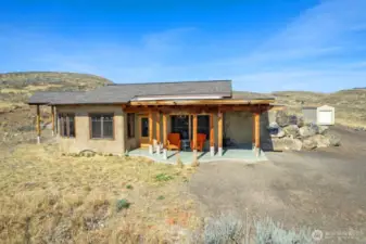 Organic 2BD, 1BA artisan-built home on 20 sun-filled acres with panoramic views of Pearrygin Lake, the Rendezvous Basin, and the Cascade and Chelan Sawtooth ranges. This 1,516 SF retreat features curved plaster walls, hand-hewn log beams, radiant concrete floors, and wrap-around windows that bring the outdoors in. The open layout includes a custom wood kitchen, utility room, and guest space, plus a detached storage shed. Tucked into wildflower meadows at the end of a quiet road, this low-maintenance home offers full sun, vivid sunsets, native landscaping, and timeless connection to nature.