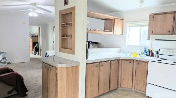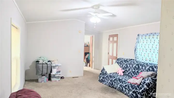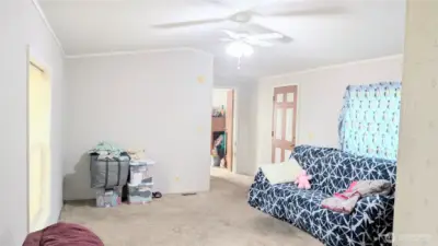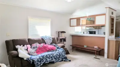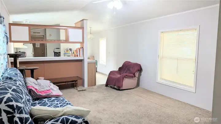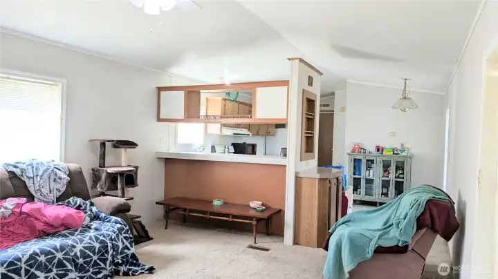 2 Bedroom, 2 Bath in 924 square feet of open concept living space. Light and bright, vaulted ceilings throughout. Primary bath has double doors into the primary suite with jetted tub. Bedrooms located at each end of the home. In need of some TLC. Close to all amenities.
