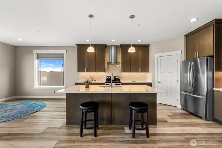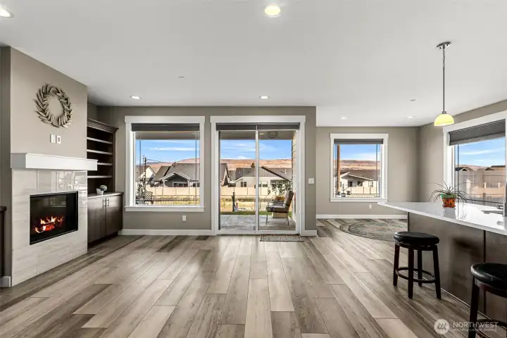 This stunning rambler delivers modern finishes, spacious living, a large 2-car garage, & peaceful canal-side views with a backdrop of the surrounding Sage Hills. Featuring 3 bed/2 baths, wide-plank flooring, 9' ceilings, & an inviting open floorplan, this home checks all the boxes. Kitchen showcases rich cabinetry, white quartz counters, a wide island with bar seating, & sleek under-cabinet lighting. Relax on the shaded covered patio overlooking the landscaped yard & rock retaining wall, with seasonal water flowing behind the property. Enjoy a luxurious 5-piece primary suite, Bali blinds throughout, RV parking, & a gas hookup for effortless outdoor cooking. Prime location near schools, shopping, medical care, & scenic walking trails.