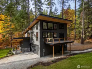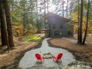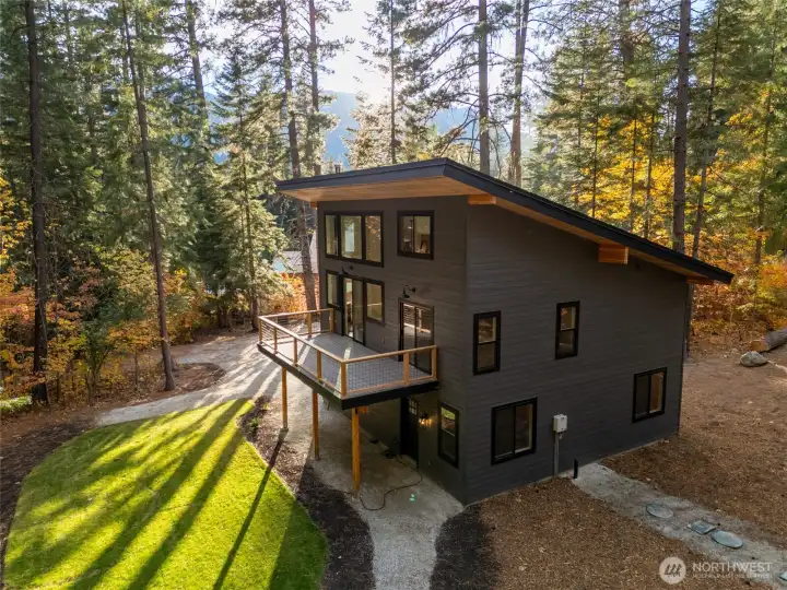 Tucked into Whispering Pines community, this brand-new 2-bedroom, 2-bathroom home (with 2 bonus rooms for extra guests) sits on a 1.2-acre lot of sun/snow abundance. From the vaulted great room soak in the Nason Ridge views while the crackling woodstove and crisp kitchen make you feel at home. The primary suite offers direct access to the big back deck—perfect for morning coffee or stargazing at night. Just off the deck, you'll find a charming rock fire pit—ready for s’mores. Enjoy the perks of community water, reliable high-speed internet, and low-cost power—a combo that keeps things easy on the wallet. Stroll to Lake Wenatchee for a swim, 25 minutes to Leavenworth, and an easy hop to Stevens Pass for a day on the slopes. This is the one!