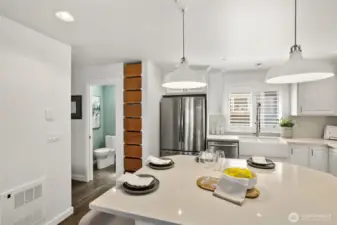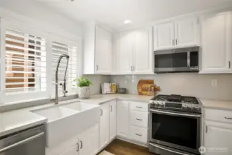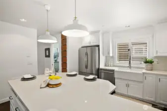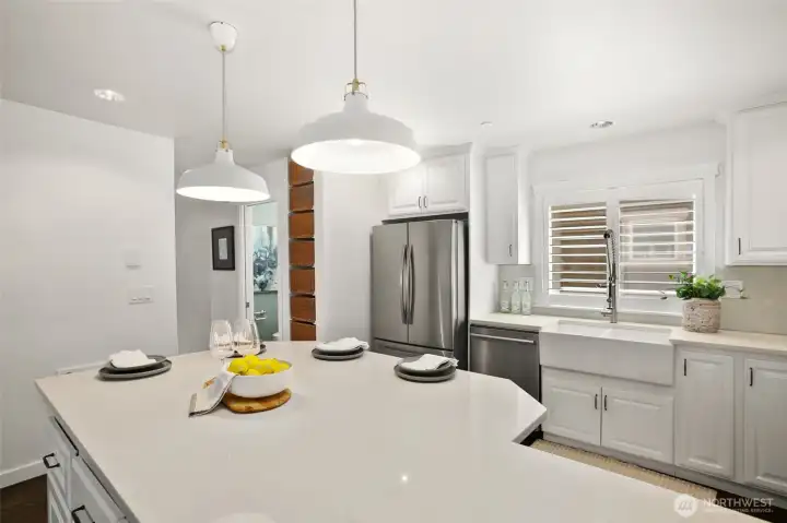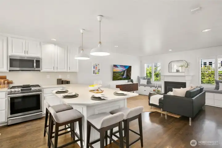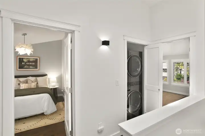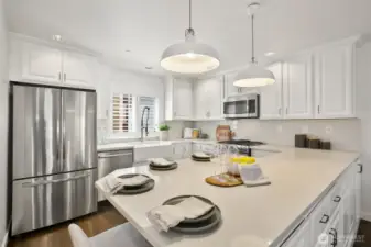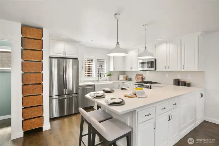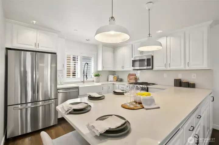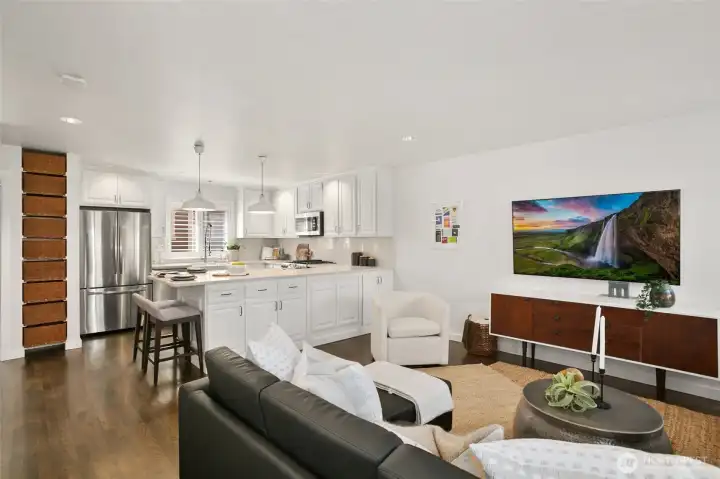 Live the Ballard lifestyle in this lovely townhome w/98 Walk Score. Remodeled white kitchen has quartz counters, gas range, Bosch dishwasher & coffee-bar/work nook, opening to flexible dining & living zones. Hardwoods, gas fireplace, custom shutters & twin window seats w/storage. Upstairs, a spacious primary offers large closets & a spa bath; the 2nd bedroom serves guests, office or gym. Natural light pours in. Landscaped, low-care front yard twinkles under patio lights. Extended 1-car garage provides built-ins & driveway spot. Stroll to Market St, Ballard Ave, farmers market & transit; minutes to SLU, Golden Garden & I-5. No HOA. Pre-Inspection report available. Move-In Ready! Mortgage savings may be available for buyers of this listing.