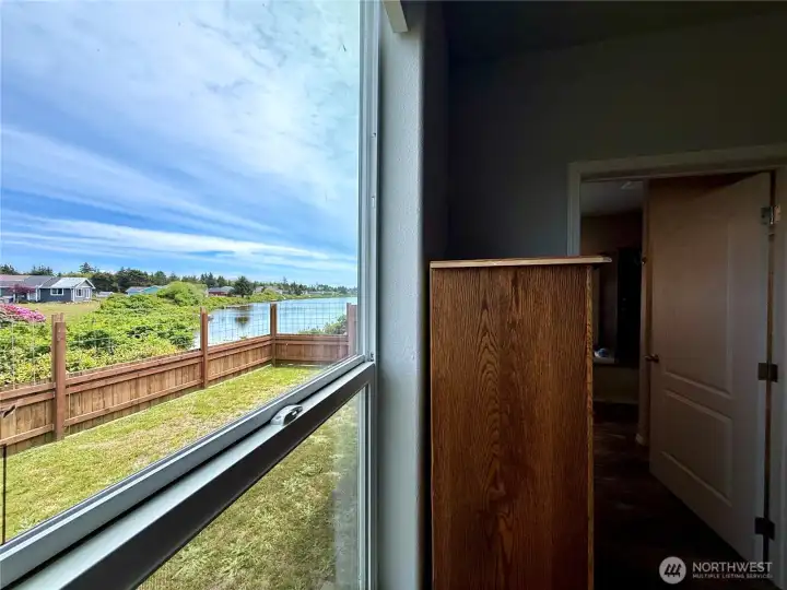 Almost new & perfectly positioned on the lake, this 3-bedroom + office home is just under 1,800 sq ft & thoughtfully designed. Open floor plan boasts 9’ ceilings & walls of windows capturing lake views. Spacious primary suite features a massive walk-in closet & en-suite w/walk-in shower & soaking tub overlooking the water. Two additional bedrooms are located on the opposite end of the home, separated by a full bath w/linen closet. A French-door office, large walk-in pantry, & mudroom with W/D add function & style. Outside: oversized 20x30 garage/shop w/powered loft lift, finished outbuilding w/electric, RV hookups, & fully fenced yard. Includes transferable, seller-paid dock permits—an exceptional opportunity to embrace lakefront living!