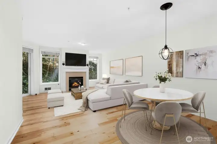 Live in the heart of downtown Kirkland. Brezza is located East of Market which is walking distance to restaurants, beaches, Marina Park, Kirkland Urban and Google. Open floor plan 1 bed 1.5 bath with den/office. Updated kitchen with slab granite, stainless steel appliances, breakfast bar and dining area just off the kitchen. Hardwood floors, freshly painted bedroom, updated powder room and gas fireplace. The unit comes with a parking stall and storage locker. Amenities include an on-site manager, community room with kitchen, conference room, large courtyard, bike & kayak storage, guest parking and gym. Brezza offers two guest suites for nightly rentals. New interior paint.