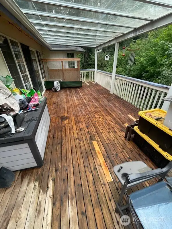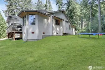 This lovely rambler is nestled in the highly desirable Clearwood Community in Yelm! Spacious 3 bed, 2 bath home with open floor plan, vaulted ceilings, generously sized rooms, walk-in closets and abundant natural light. Located in a peaceful setting with green space behind the home and just steps from amenities such as private access to 3 lakes, boat ramps, docks, swimming area, BBQ facilities, seasonal swimming pool, and sports courts. Enjoy year-round outdoor living on the partially covered full-length back deck. A heat pump ensures comfort in all seasons, while a generator provides security in winter storms. The oversized three-car garage includes an extra-large bay, perfect for RV, boat, etc.