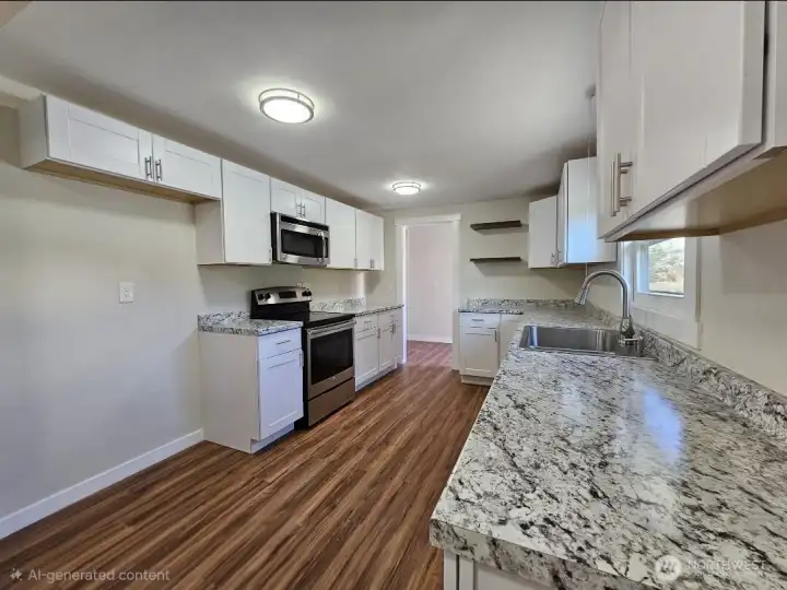Nestled in the scenic hills of Longview, this captivating single-level home boasts four bedrooms and one bathroom. The extensively remodeled interior is filled with natural light, pouring in through extra-large windows. A newly constructed French drain system surrounds the property, enabling the basement to be converted into additional living space. The kitchen features sleek stainless steel appliances, while the expansive deck and yard offer a perfect setting for outdoor recreation. Gardening enthusiasts will appreciate the property's optimal sun exposure. Conveniently situated near town and public transportation, this residence occupies a spacious lot, providing ample off-street parking.