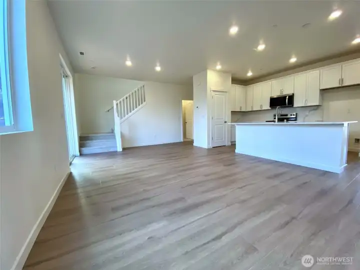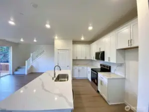 Welcome to Mill Bridge by KB Home. This beautifully designed home features an open floor plan with a spacious great room enhanced by a sleek linear fireplace and durable luxury vinyl plank flooring. The lower level offers a versatile layout with a bedroom, full bath, and generous recreation room—ideal for guests, hobbies, or multi-generational living. The modern kitchen is a standout with 42-inch upper cabinets, stainless steel appliances, quartz countertops, a walk-in pantry, and a full-height backsplash. Enjoy year-round living with both a covered deck and a lower-level patio. The primary suite provides a relaxing retreat complete with a walk-in closet and a spa-inspired bath.