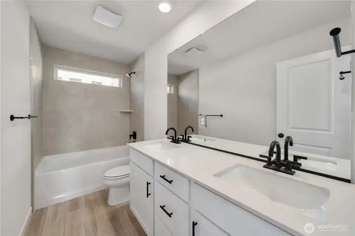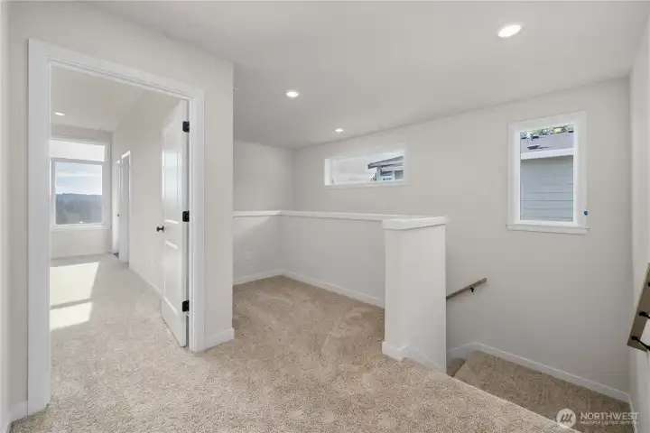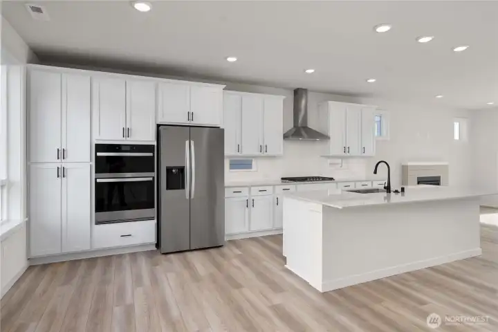 Move-In Ready Rainier at Poulsbo's Liberty Bay Vista blends nearly 2800 sq ft, 4 Bedrooms, 3.5 baths & a flex space w/modern new construction + water & sunset views. The lower level boasts a 2 bay garage w/8' door + EV outlet, an 8' entry door, 9' ceilings & a private 2nd primary suite w/separate mini-split, en-suite bath w/tiled shower & walk-in closet, ideal for guests or multi-generational living. The light, bright & open main level features 9' ceilings + a gourmet island kitchen w/42" soft-close white solid-wood cabinetry, quartz counters, tile backsplash, under-cab lighting, a GAS cooktop w/hood, wall oven/micro & large dining space that opens to the great room, anchored by a cozy gas fireplace, powder rm & flex space. Enjoy indoor/outdoor living & stunning SW sunsets over Liberty Bay from the 2 view decks on the main floor and upstairs off the primary BR. The landscaped, terraced backyard is fenced & flat w/a patio. Stairs w/soaring ceilings lead you to the primary suite w/2 walk-in closets. The en-suite bath offers a raised-height 2 undermount sink quartz topped vanity & a walk-in tiled shower w/frameless glass. A full hall bath flanks 2 bedrooms & the laundry rm includes a sink & cabinetry. Only Minutes to Bainbridge & Kingston ferries.Washer/Dryer/Fridge Included! Walk to all 3 North Kitsap schools or down the waterfront to downtown Poulsbo's shopping/dining! Buyer’s Broker must accompany and/or register Buyer at or before 1st visit.
