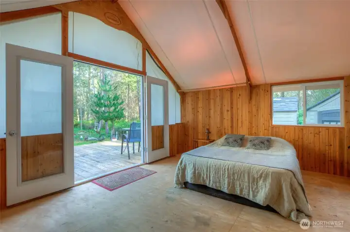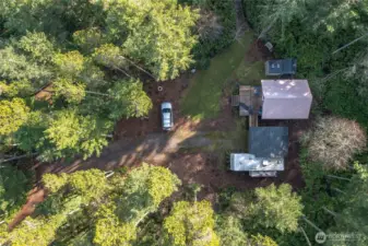 SECLUDED ISLAND OASIS Discover the perfect island retreat or ideal setting to build your dream home on Lopez Island. Pass through the charming wrought iron gate and follow the rock-lined driveway through nearly 10 fully fenced acres of serene landscape. Surrounded by nature's beauty, the property has essential utilities, including power, 6 GPM well, internet, and an installed 3-bedroom septic system. Enjoy the 2012 Rainier tent with cedar walls, French doors, and double-paned windows, complete with cozy electric stove heater, fridge, and microwave. Adjacent to the tent, a 26 ft. 2004 Coachmen 5th wheel awaits, with a kitchen nook/couch slide-out and covered deck. Please visit with a real estate agent to gain access through the locked gate.