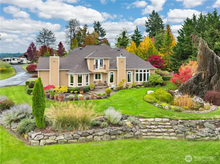Extraordinary hilltop estate! Luxurious 4,131+/- SF home w/exquisite detail thruout. Situated on a sprawling 7.05+/- acres w/captivating landscaping, home includes 3-car garage, spacious 40x40 shop, 32x22 covered pavilion, ADU w/private entrance. This package has it all! Custom home built by 1 of the area's premier builders. Entering the home you're greeted by a stunning staircase & Italian tile. Dream chef's kitchen incl Viking appliances, abundant cabinetry, subzero fridge & beautiful granite. Open concept, dine in kitchen & family room. 2 distinct hand carved limestone fireplaces. Opulent main floor suite w/ a private courtyard. 2nd floor boast a 2nd suite, 2 add'l BR's & media room. Breathtaking views of Blk Hills, 25min S of Tumwater.