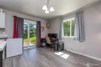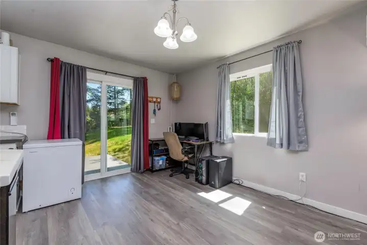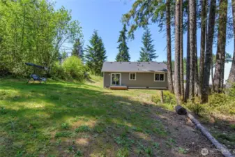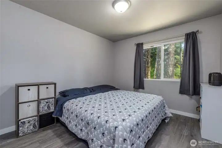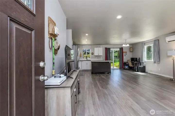This beautiful newer 2-bedroom, 1-bath home features a spacious great room with large windows that fill the space with natural light. The home boasts durable vinyl plank flooring throughout. The kitchen is a highlight, offering elegant quartz countertops, a stylish tile backsplash, sleek stainless steel appliances plus a freestanding island for extra counter and seating space. A mini ductless A/C system ensures comfort in all seasons. The private backyard is perfect for outdoor gatherings, complete with a deck for relaxation. Community amenities include a 9-hole golf course, café, private restaurant and pub, water skiing, fishing, swimming, tennis and basketball courts, plus several parks. Perfect first home, downsize home or 2nd home!!!