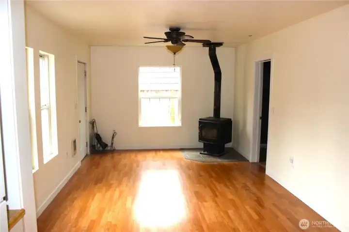 Cute rambler with a large, fenced backyard. Close to everything. Affordable 3-bedroom home features over 1000 square feet, efficient kitchen opens to the large living room. Primary bedroom attached to the full bathroom. Woodstove helps keep heating bills lower. Newer roof. Bigger city lot with plenty of room to play in the fenced backyard and a cedar shed to store all the toys and tools. Great location just minutes from grocery stores and the freeway. Freshly painted interior! Back on market, have an FHA appraisal completed above-value with no conditions. Call with questions.