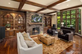 Unparalleled Luxury and Sophistication at Gunshy Ridge. This Architectural Digest worthy residence exudes elegance and sophistication. Set in a tranquil cul-de-sac setting on over an acre, the property greets you with a gracefully designed water fountain and meticulously maintained landscape, heralding the grandeur that lies within. This expansive estate spans 6,051 sq ft of refined living spaces with 4 bedrooms and 6 baths, including a main floor primary suite and culinary masterpiece chef’s kitchen opening to captivating family room, where European flair meets exquisite craftsmanship. A 5-star outdoor oasis invites relaxation with covered outdoor living, hot tub and elegant entertaining spaces and flat lush lawn.