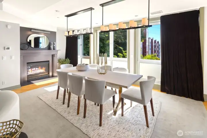 Where updated elegance meets timeless sophistication. A brand new color palette, designer wallpaper, and entrance chandelier. Step off your private elevator into softly illuminated interiors with curated finishes. The chef’s kitchen, anchored by an oversized quartzite island with premium appliances, walk-in pantry, and clever storage. Savor a vintage from the 240-bottle wine vault as city lights shimmer from your private terrace. A private guest suite with en/suite full bath and adaptable flex den are perfect for extended stays. Three garages, abundant storage, and sweeping city views complete this space—more than a view, it’s the experience of living minutes from Seattle Center, waterfront parks, and shops.