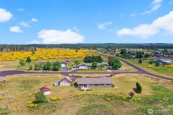 Spacious Country Living in this rambler style home with ADU in Bordeaux Ranch! 3 bed, 2 bath 1824 SF home on 4.64 natural acres, a 576 SF studio/ADU w/ vaulted ceiling & bonus half bath for a separate dwelling space. Features a kitchen w/ adjoining family room, vaulted ceilings, large primary bed w/ double closets, Mt. Rainier Views, oversized patio, 2 car garage, & paved circular driveway. Super convient corner lot also has huge lawn mower garage & garden/tool shed. Studio/ADU is plumbed for a shower & kitchen! Home has new roof in May of 2025 & is well maintained inside & out. Acreage is mostly left natural to enjoy the unique beauty of the Mima Mounds praire grassland habitat & is less than a mile from the paved Gate-Belmore Trailhead.