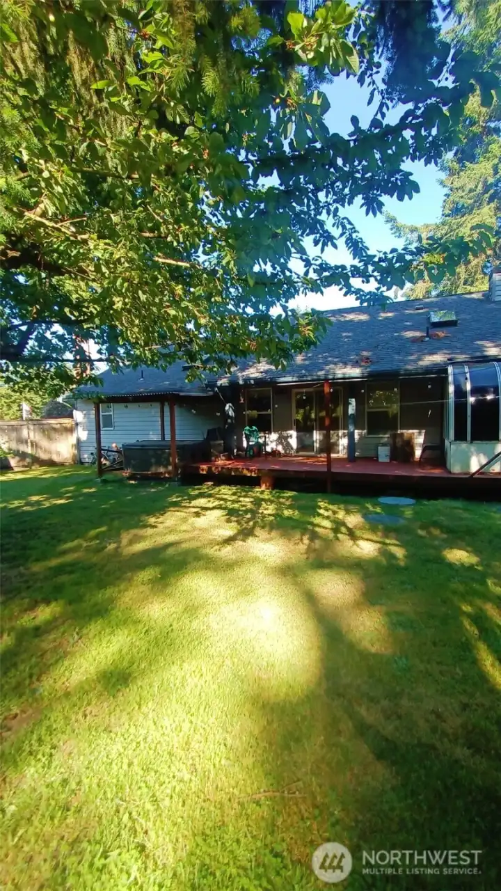 This stunning 3-bed, 2-bath home offers the perfect blend of comfort and elegance. Situated in a private community on a large, fully fenced lot, it boasts breathtaking landscaping with vibrant fruit trees that add both beauty and charm. A welcoming interior features a mix of carpeting and rich wood flooring. The spacious primary suite is designed for relaxation, complete with a luxurious jetted tub. The home also offers ample storage and parking with its expansive 3-car garage. There are two storage sheds in the backyard, providing ample space for tools, equipment, or hobbies. Unwind in the built-in hot tub or enjoy year-round relaxation in the sunroom. This exceptional property is ready to welcome you home!