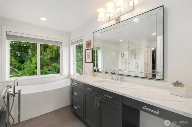 Desirable East Gig Harbor! Beautifully landscaped with mature gardens, a tranquil water feature and partially fenced backyard. Inside, the spacious living room is anchored by an elegant fireplace. Formal dining and den feature classic millwork details. The updated kitchen has quartz counters, a built-in nook and opens to family room with custom built-ins plus a 2nd fireplace and access to expansive deck. Upstairs luxurious primary suite offers a stunning new ensuite 5 piece bath & walk-in closet. Two bedrooms share a Jack & Jill bath, plus a built-in study area. The 3rd bedroom and bonus room complete the upper level. Minutes to downtown, schools, boat launch, parks & trails—this home has it all!