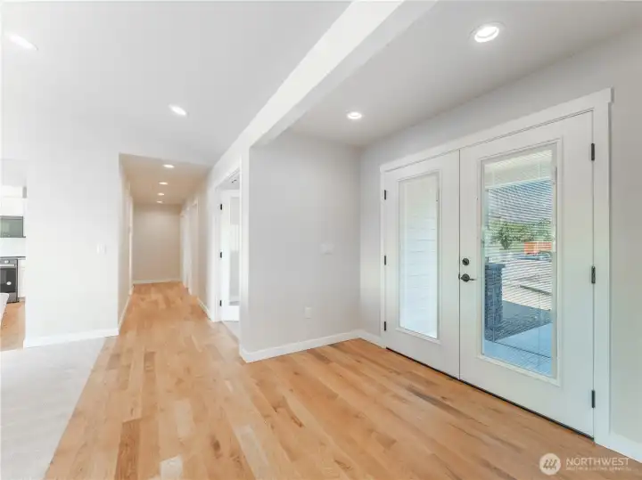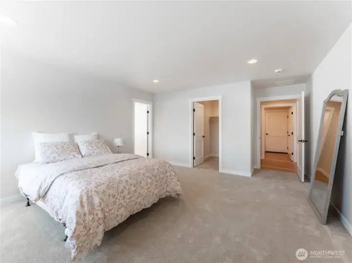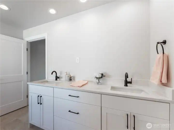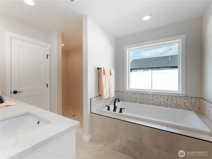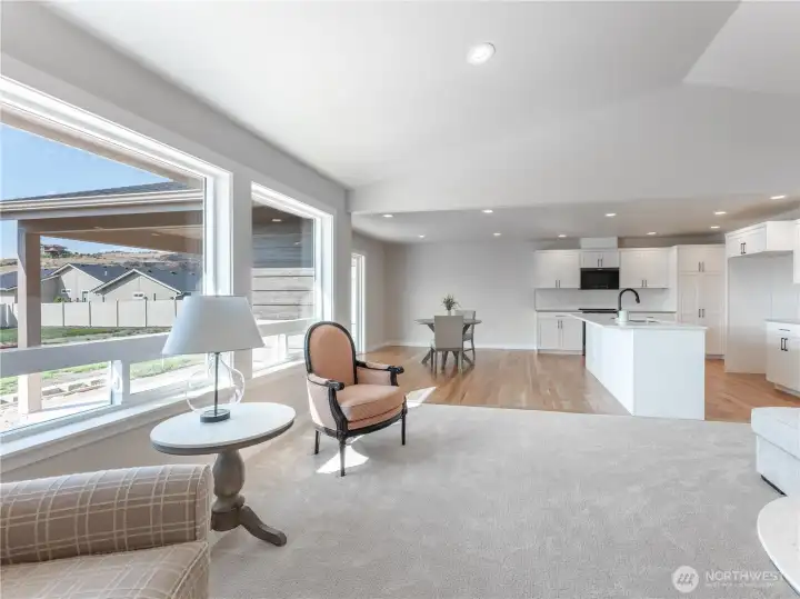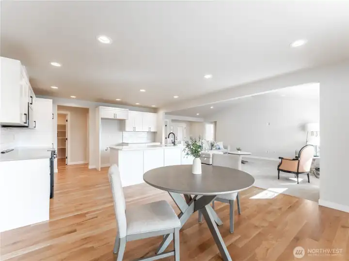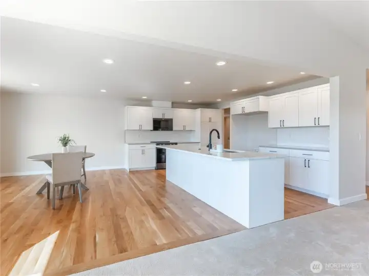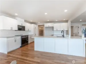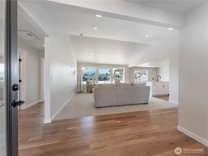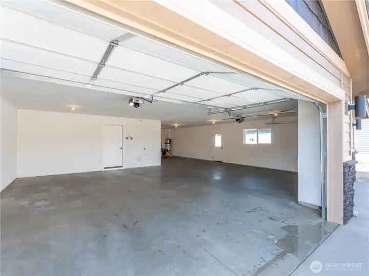 Great room welcomes you with an open floor plan and a nice separation of bedrooms. Beautiful finishes include hardwood floors, quartz counters, and tile baths. The primary bath is complete with a soaking tub and a fully tiled walk-in shower. The 3-car garage is 1026 square feet, offering parking for 4 cars plus storage. The garage is finished and painted with heat. Lots of RV parking for your toys. Covered patio for year-round enjoyment.