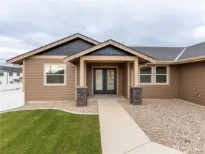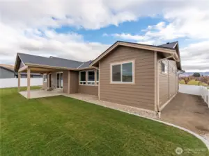 Landscaping is complete! Fenced, curbing, yard.... Move in ready! Great room welcomes you with an open floor plan and a nice separation of bedrooms. 3 bedrooms plus a separate office space with beautiful finishes include hardwood floors, quartz counters, and tile baths. The primary bath is complete with a soaking tub and a fully tiled walk-in shower. The 3-car garage is 1026 square feet, offering parking for 4 cars plus storage. The garage is complete with heat. Lots of RV parking for your toys. Covered patio for year-round enjoyment.