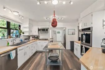 This 4-bedroom charmer offers outstanding craftmanship tucked on almost 1/2 acre! Secluded with curb appeal featuring a showstopping kitchen with double ovens, gas range, & butcher block countertops. A full bathroom on each level, new roof & gutters, beautiful new fiberglass framed energy efficient windows, on demand gas hot water, high efficiency heating & A/C, laundry room added to upper floor & main floor utility room with additional laundry hook-ups & commercial sized utility sink. Plumbing and electrical updated throughout. All original woodwork kept intact throughout house. 864 sqft 3-bay shop. Fully fenced-in side yard patio and all new front steps & covered porch. Hobby shop/wood storage with exterior entrance. Not in flood zone!