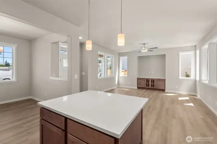 Special Financing Available! A 2/1 temporary interest rate buydown is now offered at Skyview Estates when using our preferred lender, ask for details! Rob Rice Homes Elm Plan offers the ideal easy living experience! The kitchen boasts elegant 'Shadow' Maple cabinets, quartz counters, full tile backsplash & stainless steel appliances-induction range/oven. Seamlessly connects to living room w/built in cabinetry & vinyl plank throughout the main floor. Upstairs, you'll find a loft and all the bedrooms, including a primary suite featuring a walk-in closet and a 5 pc bath with a soaking tub surrounded by tile. Quartz counter tops throughout. Oversized 2-car garage, partially covered side patio, and front yard irrigated & maintained by the HOA.