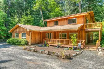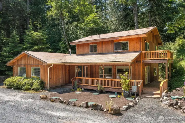 Cedar Duplex and Studio Apt. adjoined on a lovely forested 1.1 acre property, bordered by an active stream, near Otter's Lair pond and Moran State Park. Use as 4 bedroom home with mother-in-law studio apartment, or three separate rental units. Primary 2 bedroom, 1.5 bath unit on the main floor with large windows and covered deck. 2 bedroom Apt. with deck, and a studio Apt with full bath. All 3 have washers and dryers and full kitchens. Propane radiant perimeter heat, and propane ranges. New 6 bedroom Advantex septic system. Internet Fiber to property line.
