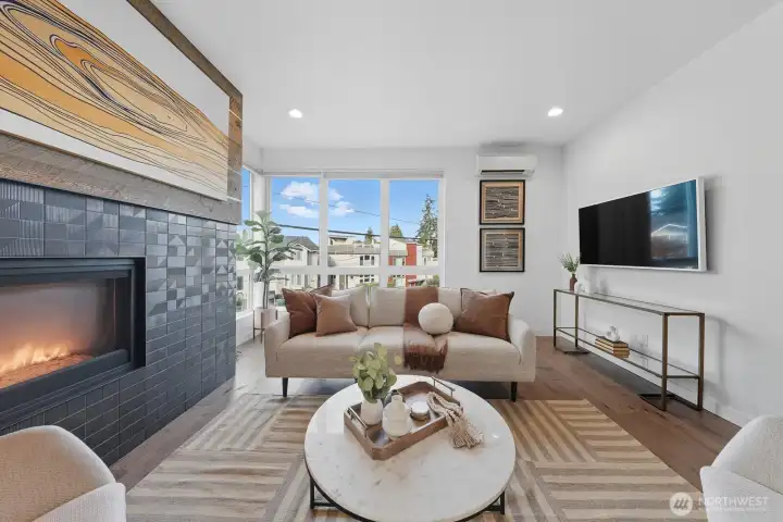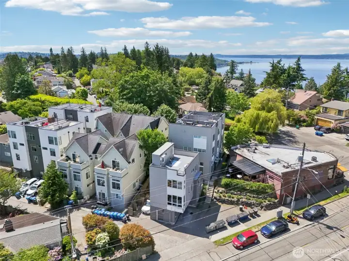 Lower monthly payments! Seller offering rate buy-down with accepted offer. Inquire! Blending elegance & eco living, this standalone home embodies convenience. 3 spacious bedrooms, 2.5 baths, & unmatched craftsmanship you'll find warm oak floors, focal gas fireplace & seamless open-concept design. Luxe kitchen with large eat-at island flows to dining, living & powder rooms. Bright & airy bedrooms are complemented by sleek bathrooms & efficient climate control for year-round comfort. Ascend to your private rooftop terrace & soak in stunning Olympic Mountain & Sound views, complete with gas, power + water. Effortless outdoor living. With garage & timelessly curated accents throughout, this Sunset Hill home sets a new standard crafted for you.
